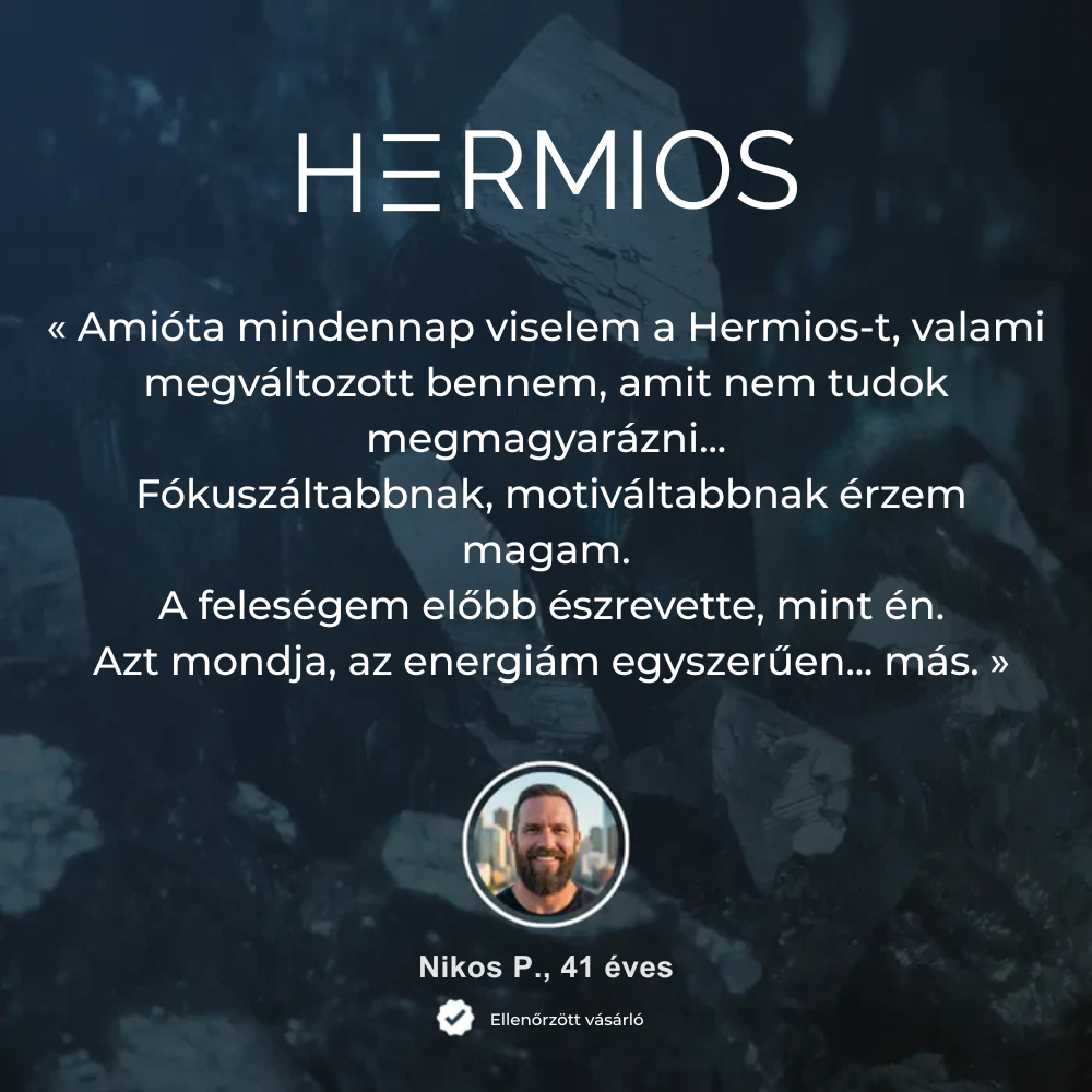 « Használd ki az ősi erőt, ahogyan a természet megalkotta — Hermios az ősi hematit erejét irányítja, hogy újraélessze a férfi vitalitást és a szellemi tisztaságot azon a harcosok kövén keresztül, amely a történelem legnagyobb vezetőit kovácsolta. »